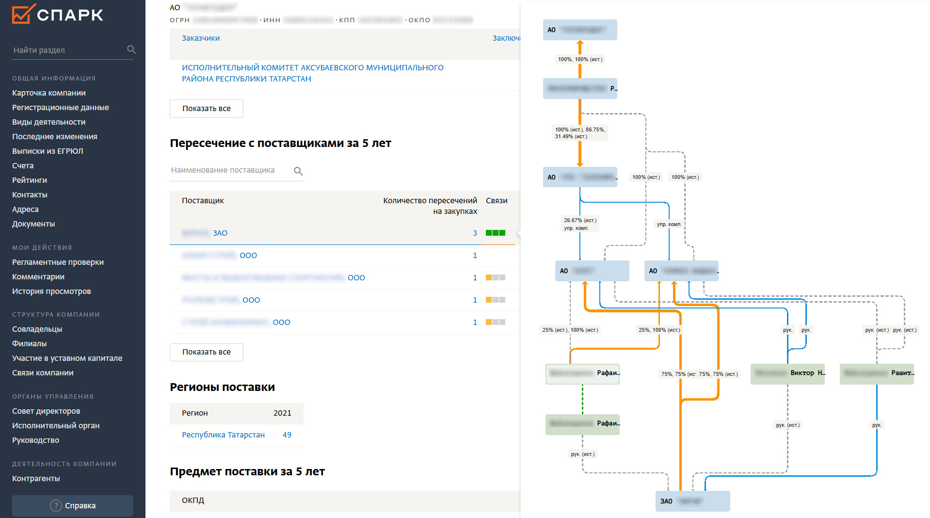 Представленная в разделе информация позволяет оценить торговую деятельность поставщика, выявить компании, созданные специально под госзаказ, обнаружить признаки концентрации на одном заказчике, скрытой аффилированности, возможного картельного сговора между участниками торгов.