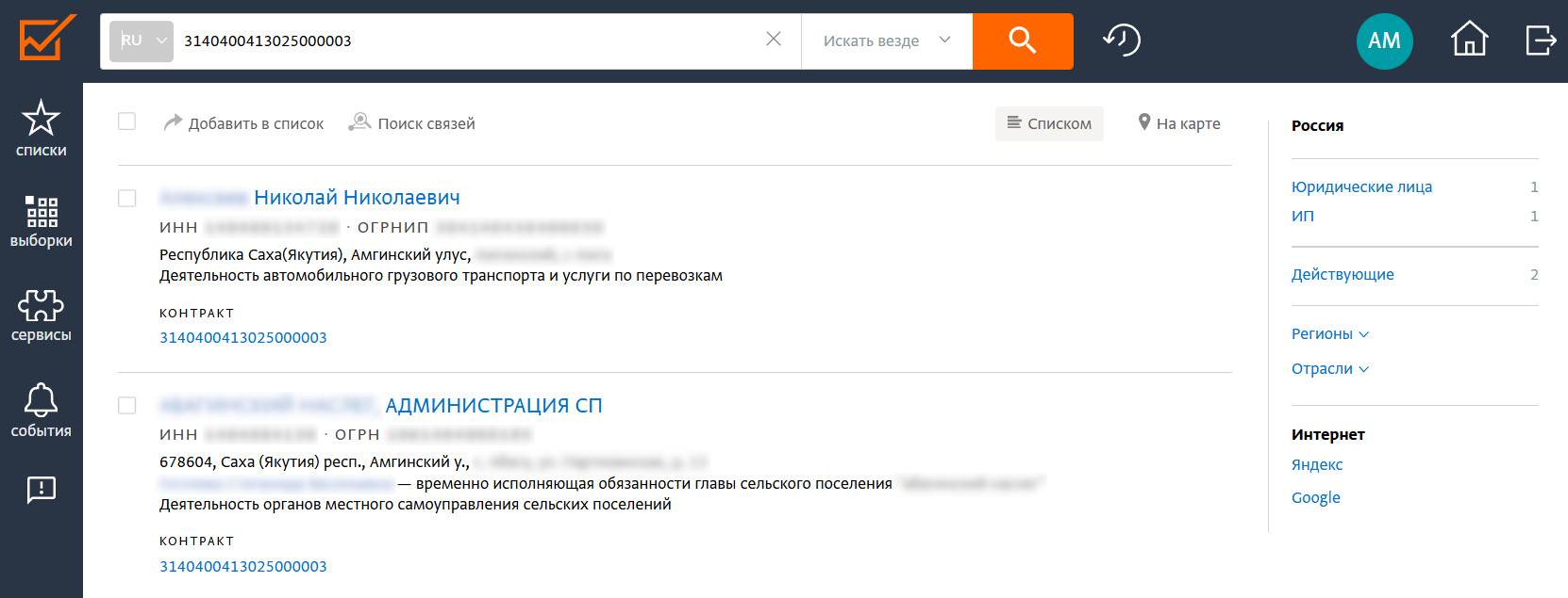 Для получения детальных данных по контрактам организаций и ИП любой из них можно раскрыть, перейдя по ссылкам в разделе.