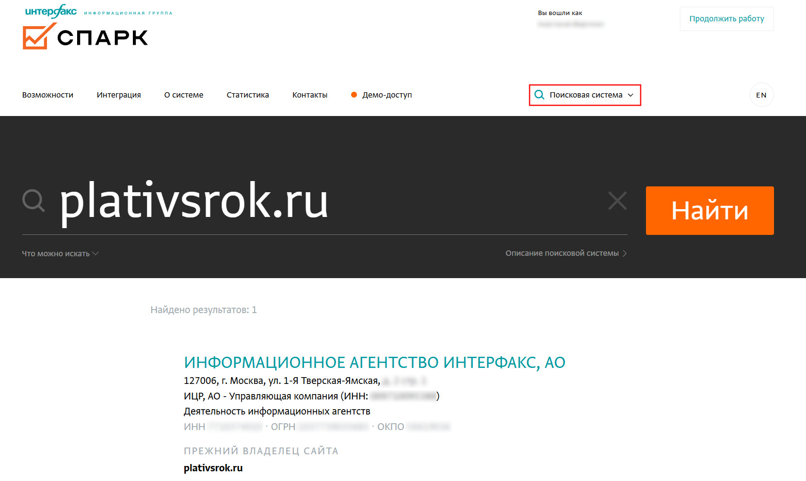 Проверить юридическую регистрацию компании или индивидуального предпринимателя (ИП) в России позволяет универсальная поисковая строка СПАРК. Пробить потенциального контрагента можно по реквизитам, названию/ФИО, учредителям/руководителям, контактным данным, включая домен (сайт), если он закреплён за юридическим лицом. Причём поиск и получение базовой информации по юридическим лицам возможны как в закрытой, так и в открытой части сайта СПАРК. Внутри системы также предусмотрена возможность идентификации и проверки зарубежных поставщиков.