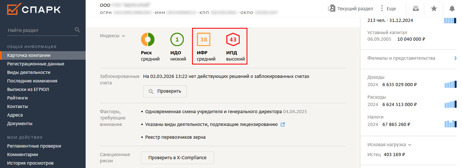 Когда же скоринги не дают однозначного сигнала и нет ни однозначных стоп-факторов, ни очевидных аргументов в пользу сотрудничества в перечнях факторов риска и признаков ФХД за последние 12 месяцев, требуется расширенная проверка поставщика и его подрядчиков по тематическим разделам их карточек в системе.